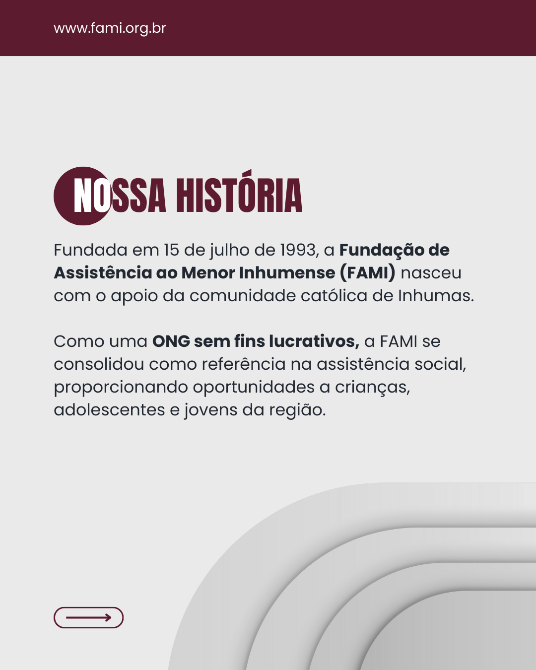 Aqui na Fami nossa missão é proporcionar às crianças e adolescentes uma experiência desportiva, artística, cultural, social bem como a promoção, proteção e defesa de seus direitos.